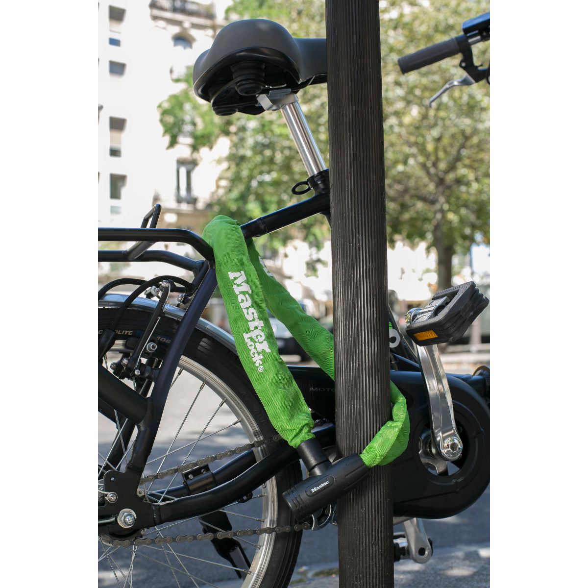 • Gehärtete Stahlkette widersteht Schneiden, Sägen und Aufhebeln