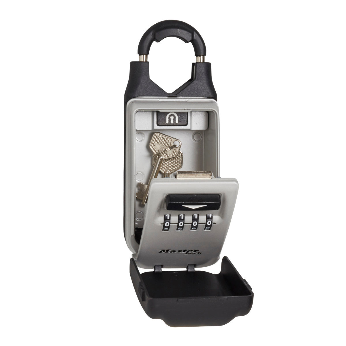 - Schlüsselkasten mit verstellbarem Bügel zur Montage an den meisten Türbeschlägen