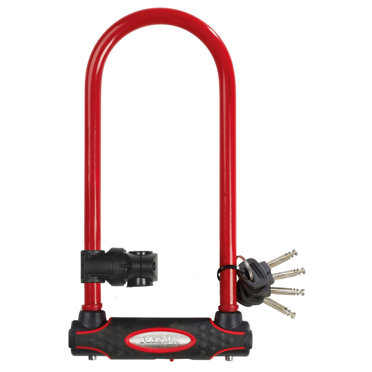 Candado en U de acero templado de 11 cm de ancho y 28 cm de longitud de grillete; rojo
