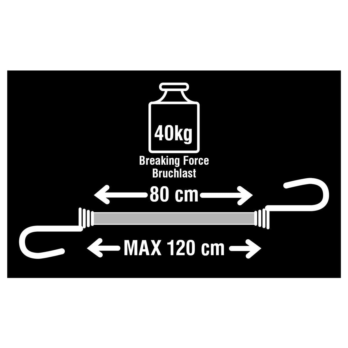 El Master Lock Twin Wire™ n.º 3021EURDAT cuenta con dos cuerdas elásticas verdes de 80 cm con ganchos de alambre para mayor resistencia. El diseño del gancho invertido proporciona espacio adicional para la fijación. Los ganchos son redondeados para evitar arañazos.