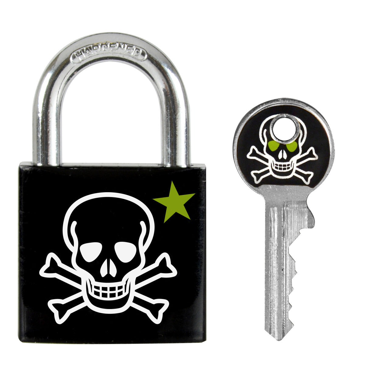 Candado de cuerpo sólido de 30 mm de ancho; patrón impreso con calaveras.