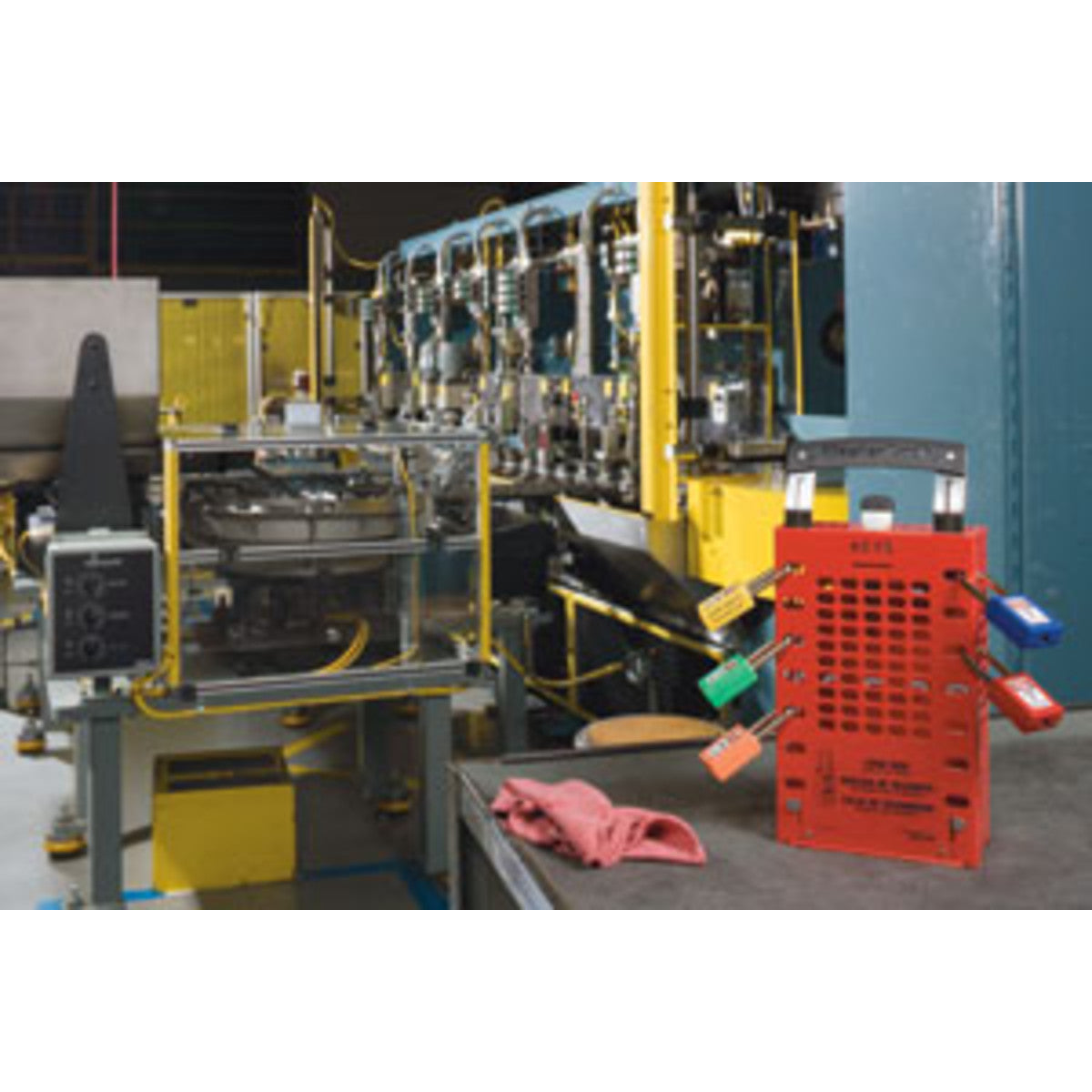 - Hasta 14 trabajadores pueden colocar su propio candado de seguridad personal o cerrojo de bloqueo.