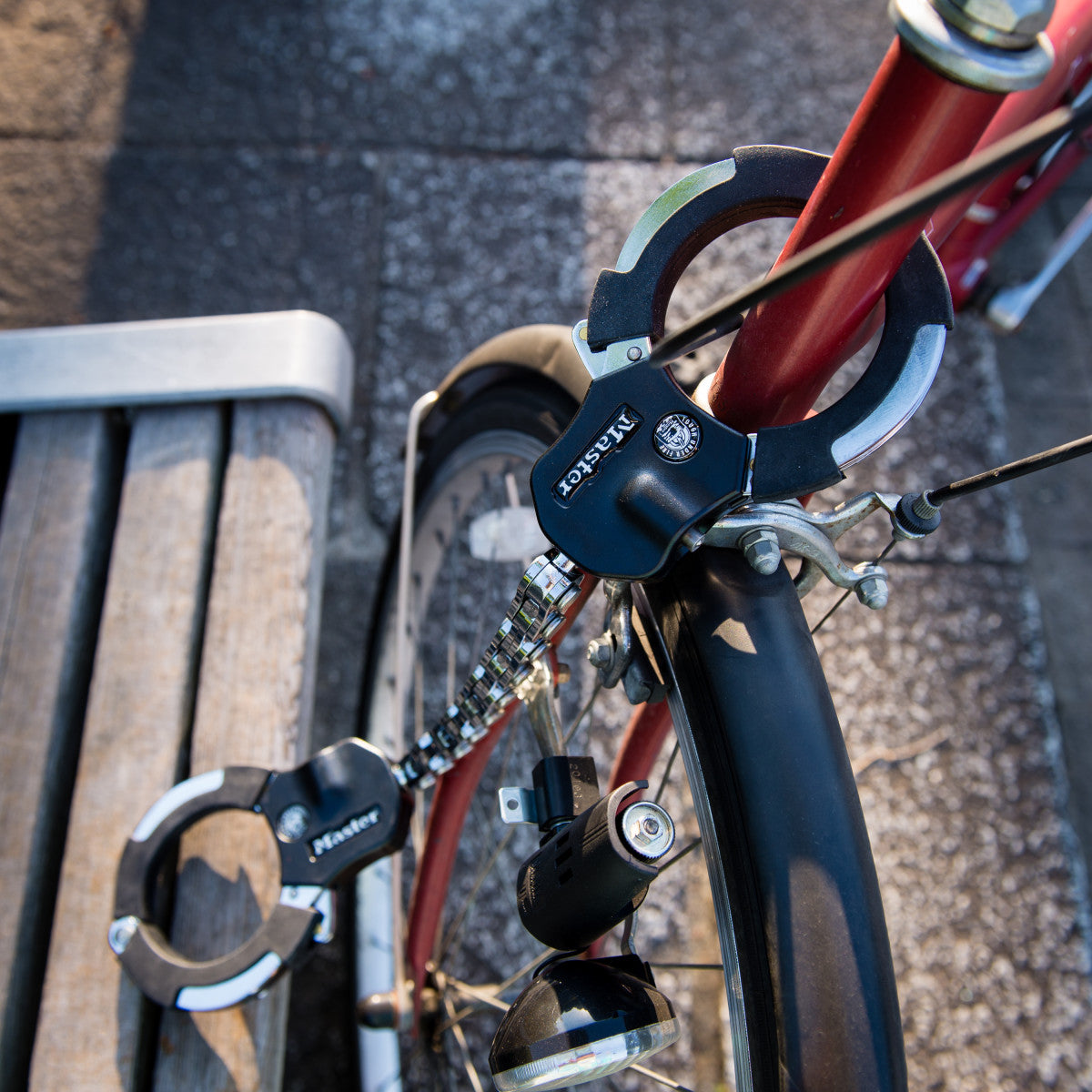 - Los puños de alta seguridad de 7,6 cm permiten el bloqueo a un parquímetro, postes de la valla u otra bicicleta