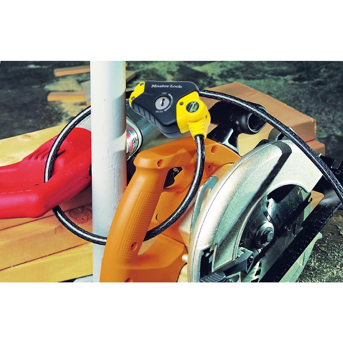 El cable de bloqueo ajustable Master Lock n.º 8420EURD Python™ tiene una longitud de 4,5 m y cuenta con acero trenzado de 10 mm de diámetro para ofrecer la máxima resistencia y flexibilidad. El revestimiento protector de vinilo protege contra arañazos. El mecanismo de cierre integrado con llave de clavija proporciona una resistencia superior al ganzuado. La cerradura resistente al óxido y el cable revestido de vinilo proporcionan una resistencia superior a la intemperie y a los arañazos. La garantía limitada de por vida le ofrece la tranquilidad de una marca en la que puede confiar.