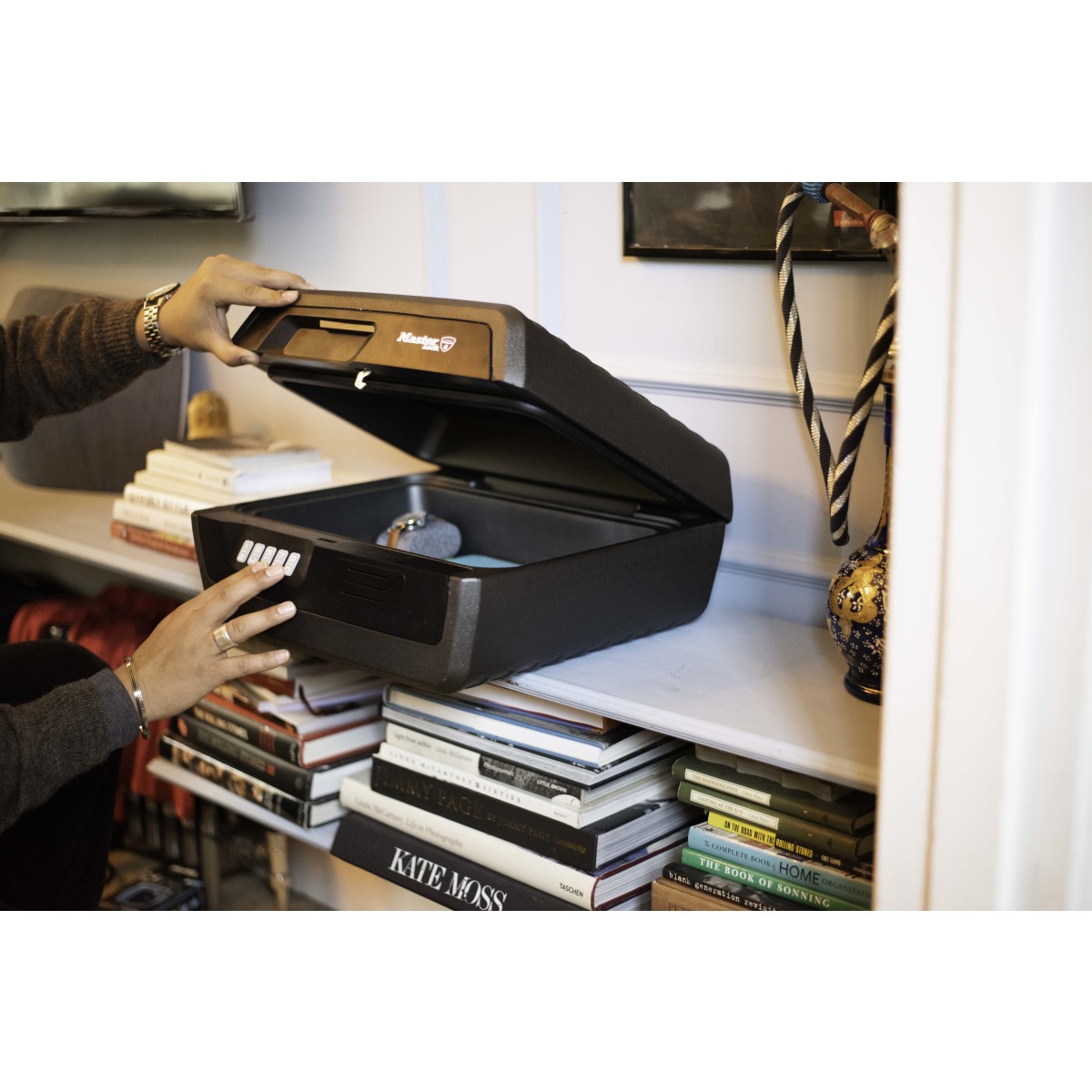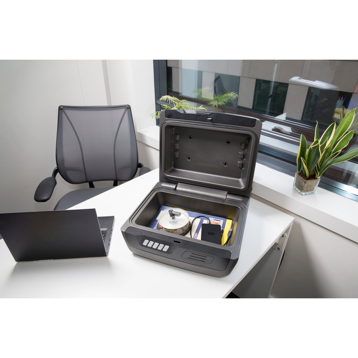 - La cerradura digital mantiene los documentos y objetos de valor alejados de miradas indiscretas y evita que la tapa se abra en caso de incendio