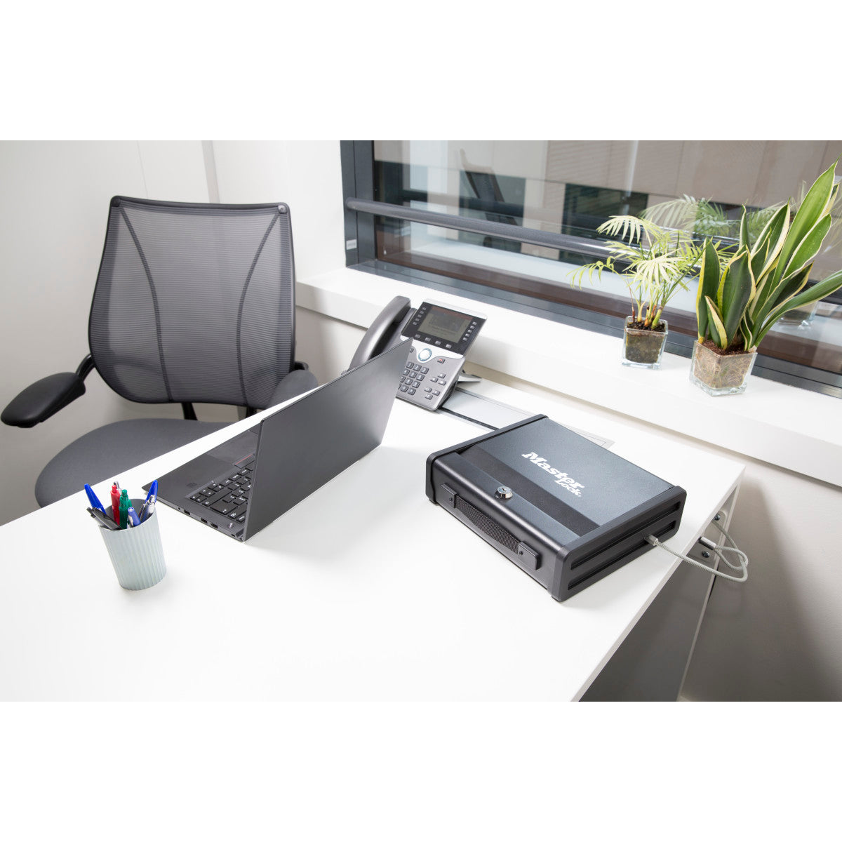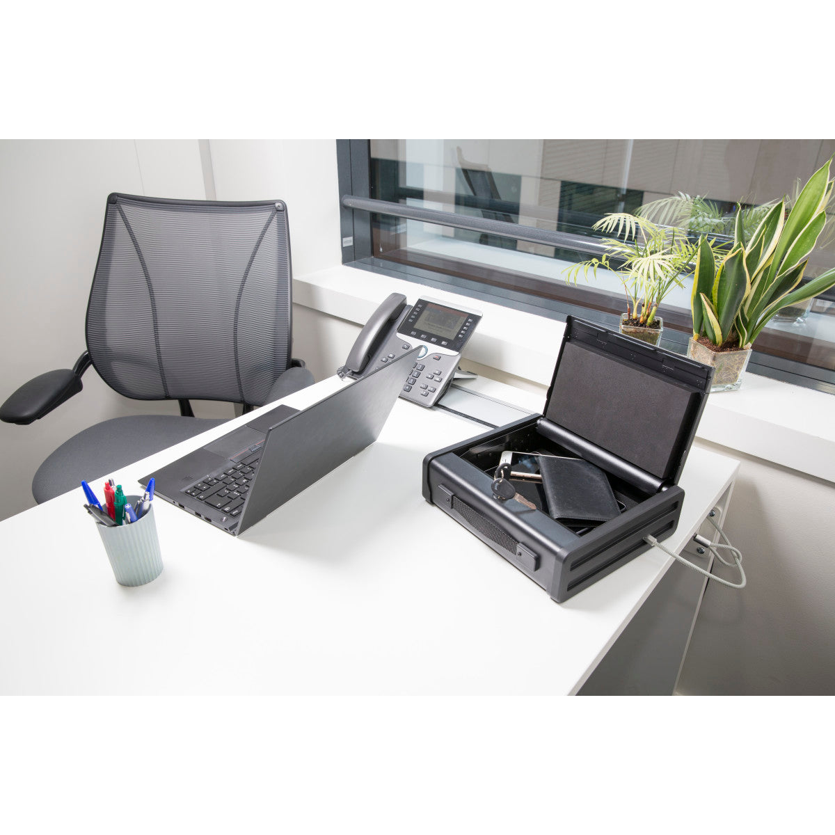 - Cable de acero para fijar la caja fuerte a un objeto en el suelo