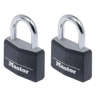 40mm wide covered solid aluminum body padlock; black; 2 pack
