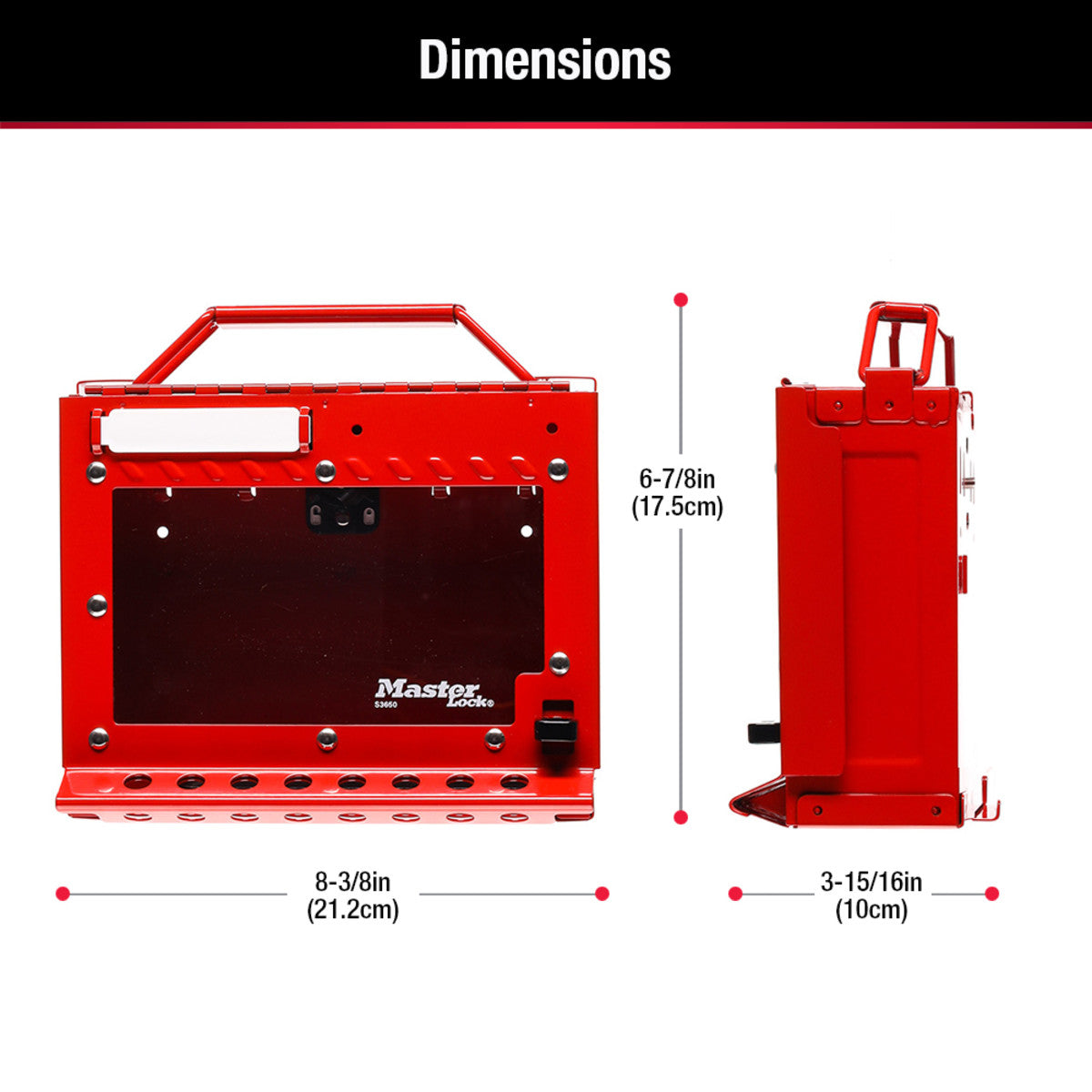 - La possibilità di riporre fino a 15 lucchetti di sicurezza all'interno della cassetta di sicurezza la rende perfetta per chiusure di piccole e medie dimensioni.
