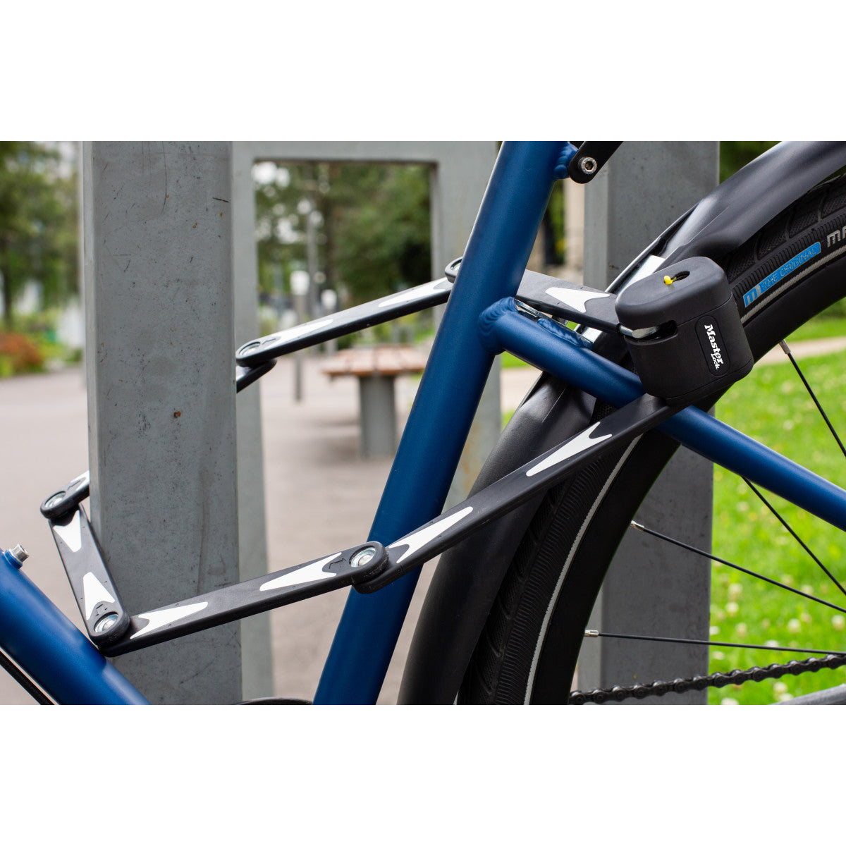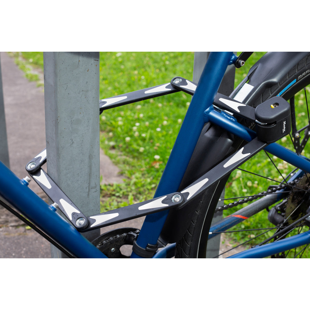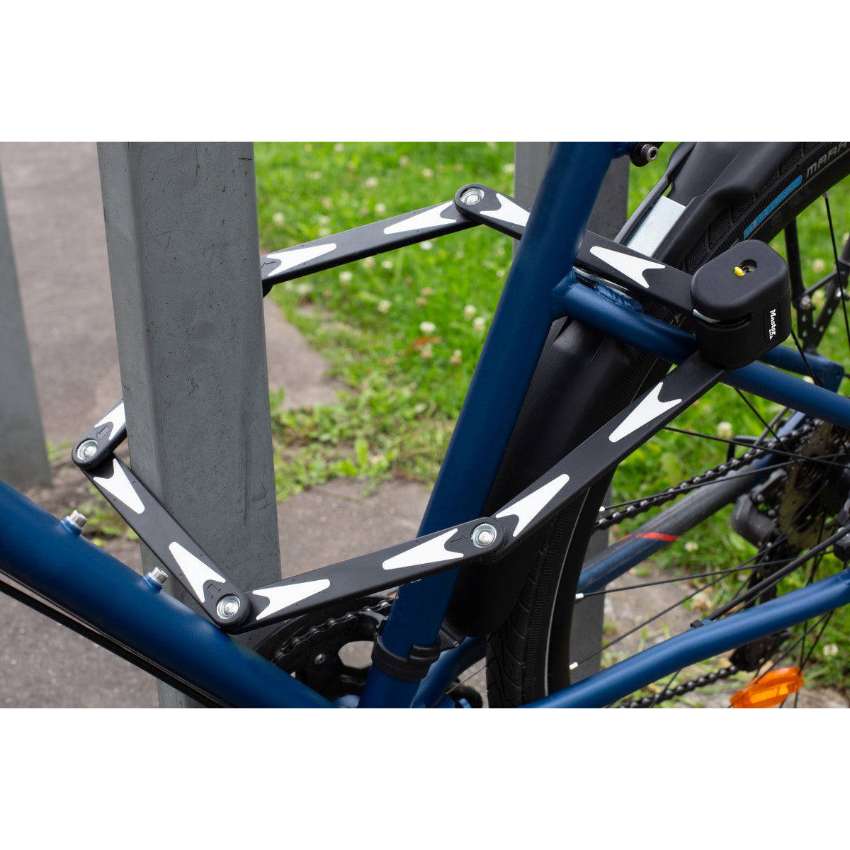 950 mm lang opvouwbaar fietsslot met gehard stalen schakels met een diameter van 5 mm