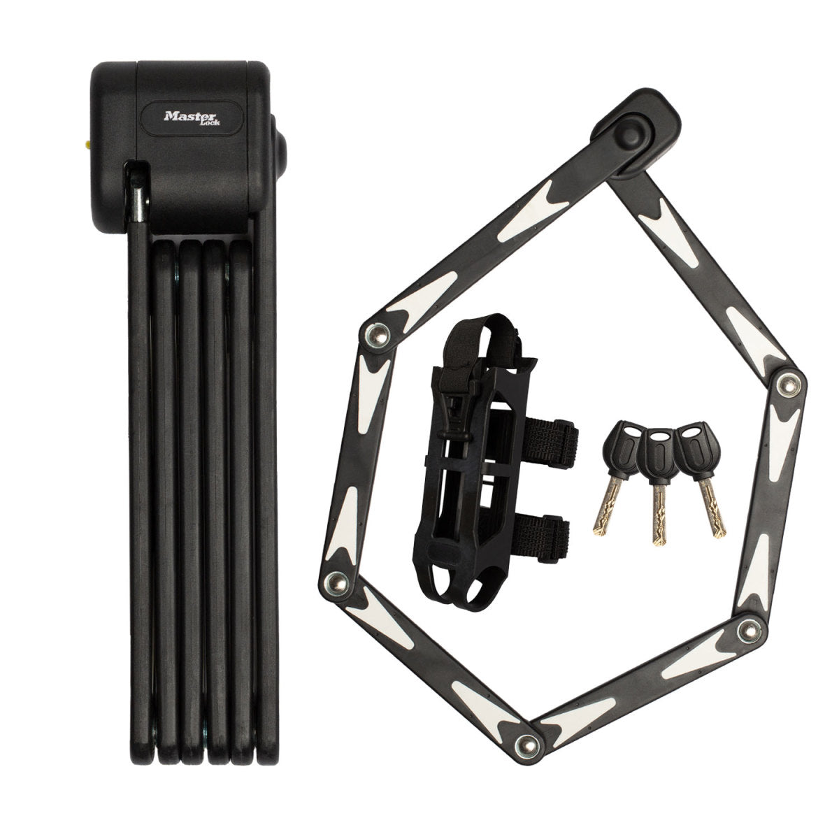 Het Master Lock No. 8333EURDPRO gecertificeerde vouwslot is 220 mm lang en heeft 5mm diameter gehard stalen schakels voor maximale sterkte en flexibiliteit. Het slot is gecertificeerd Sold Secure Bronze (UK), ART2 (Duitsland). Het vouwslot kan worden gebruikt om een reeks fietsen te beveiligen, waaronder racefietsen, mountainbikes, vouwfietsen en e-bikes. De beschermende ABS hoes beschermt tegen krassen en is zeer weerbestendig. De universele, op maat gemaakte draagbeugel maakt het slot eenvoudig te vervoeren. De beugel kan eenvoudig aan elk fietsframe worden bevestigd met de klittenbandsluitingen die het slot op zijn plaats houden. Het vouwslot wordt geleverd met 3 sleutels, waaronder één met een lampje, waardoor het slot 's nachts en bij weinig licht gemakkelijker te gebruiken is. De beperkte levenslange garantie biedt gemoedsrust van een merk dat je kunt vertrouwen.