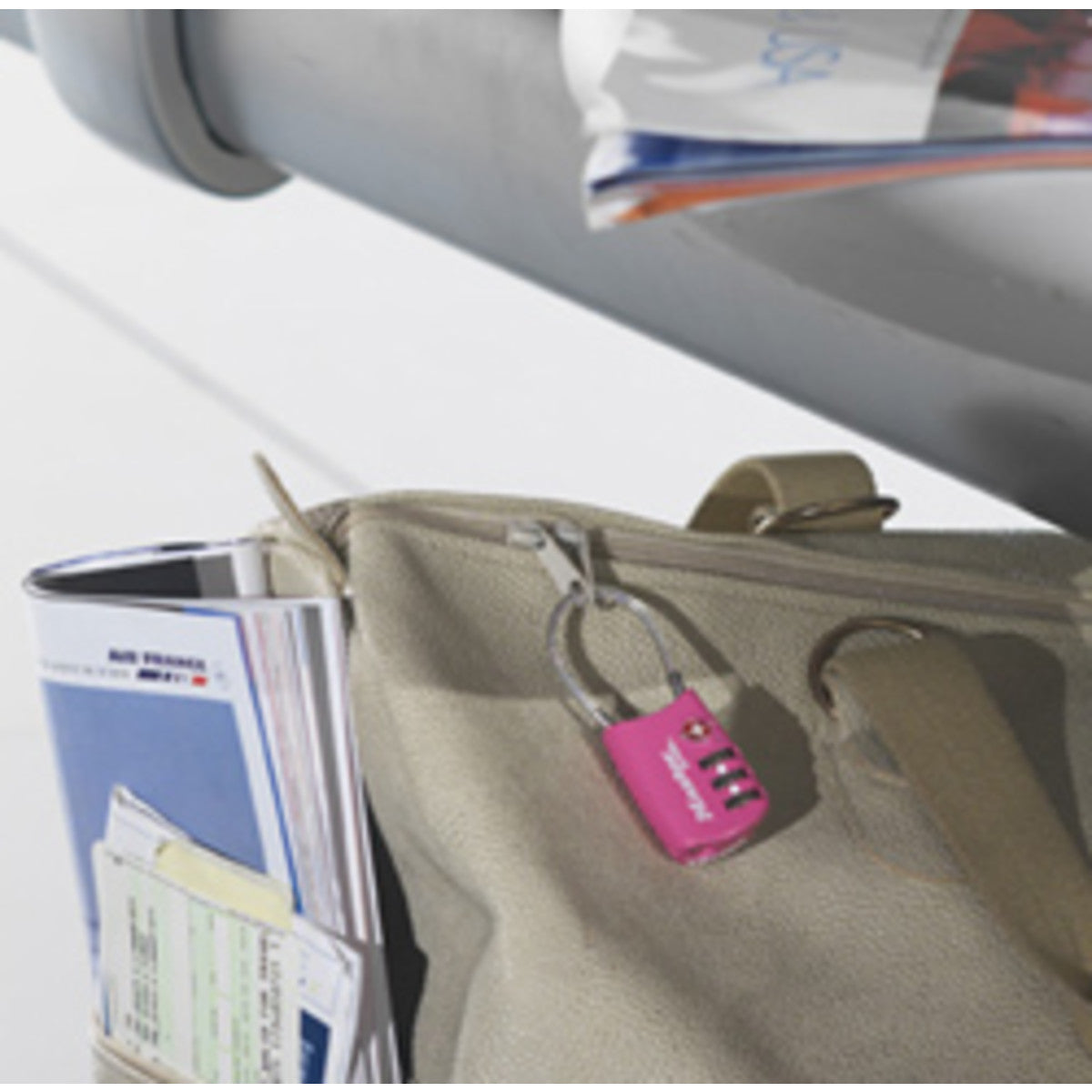 • Flexibele, met vinyl beklede stalen beugel met een diameter van 3 mm biedt weerstand tegen misbruik door bagageafhandelingsapparatuur.